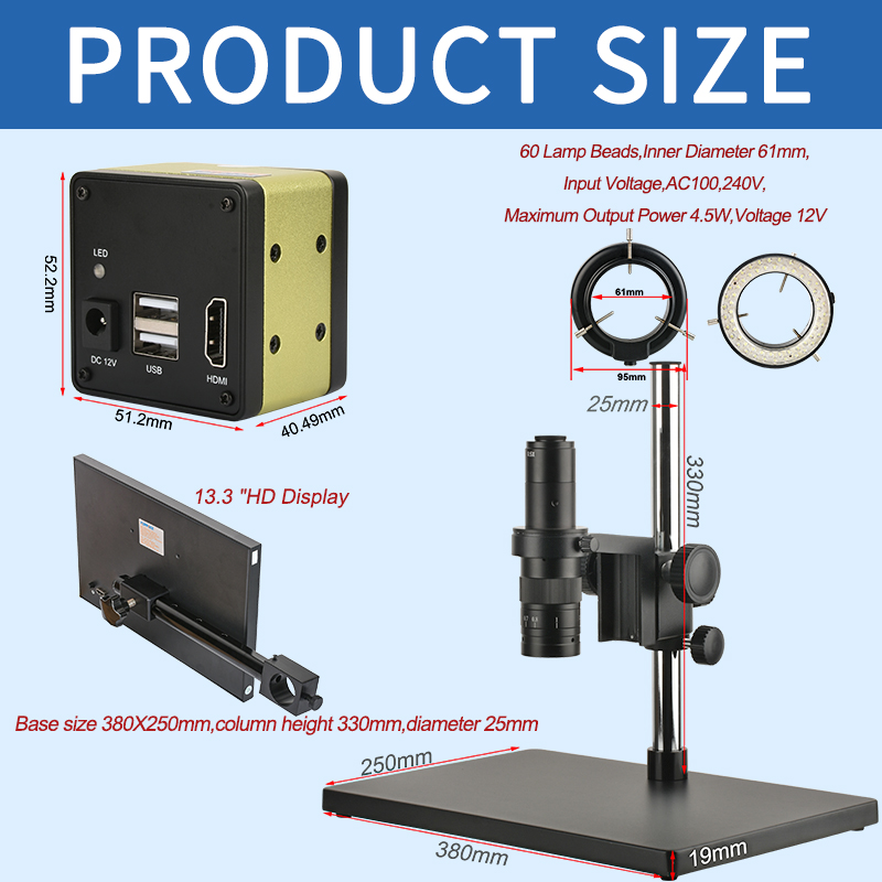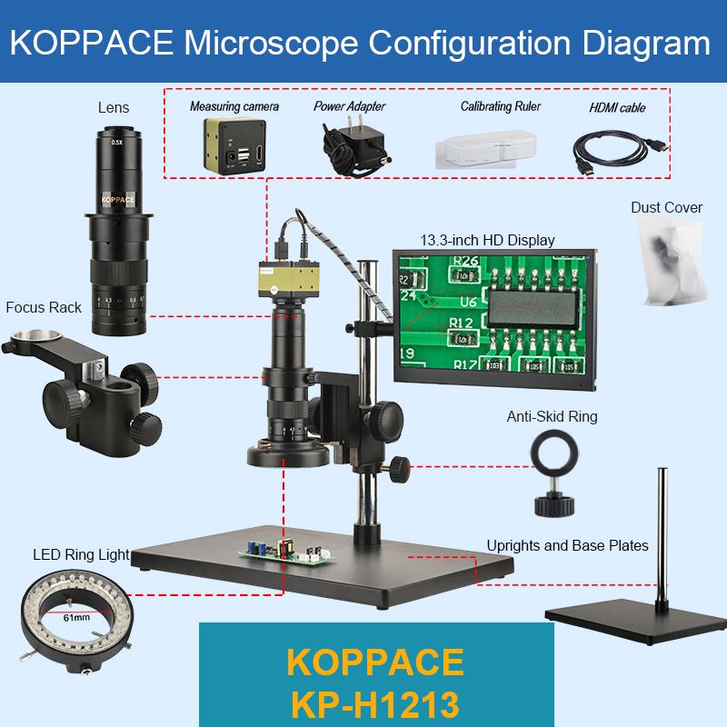 KOPPACE 11X-85X Measuring Electron Microscope 2K Camera HDMI Output 13.3-inch HD Monitor