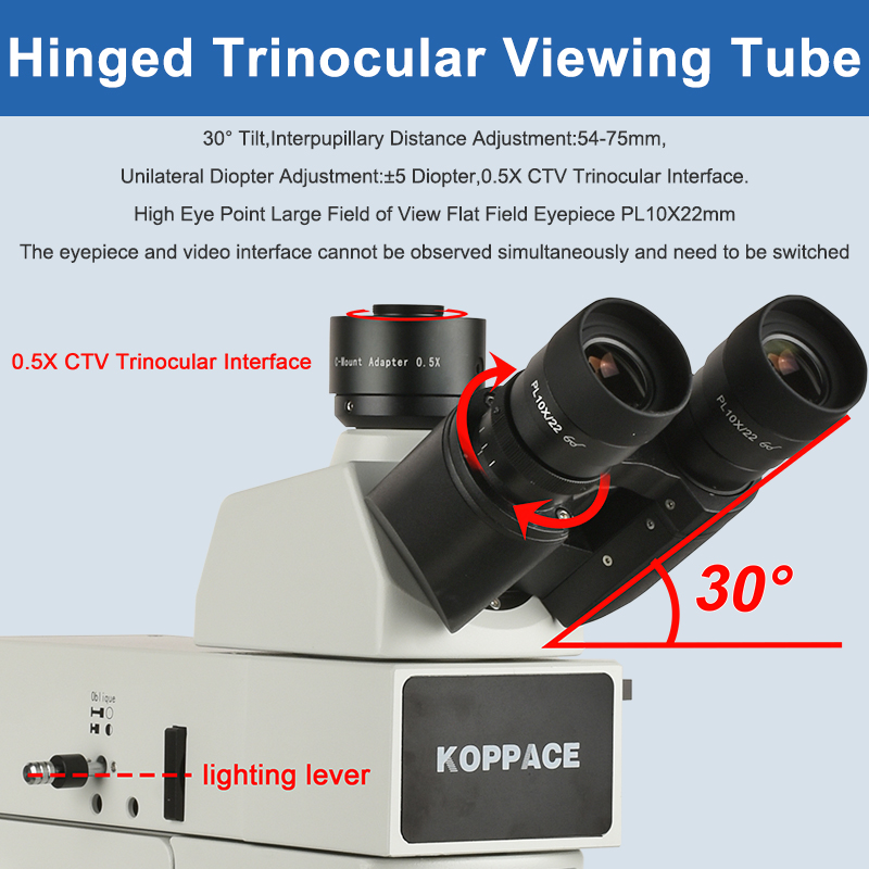 | Observation Tube | 30° Tilt,Inverted Image,Hinged Trinocular Viewing Tube,Pupillary Distance Adjustment Range 54-75mm |