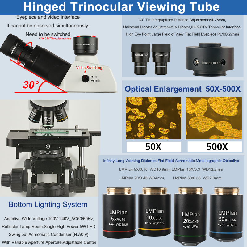 | Optical Magnification | 50X、100X、200X、500X |