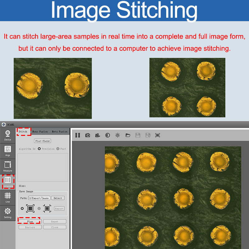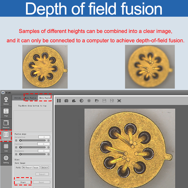 | GigE/USB3.0 | By connecting to a computer via a network port or a USB3.0 interface, image stitching and depth-of-field synthesis can be achieved. |
