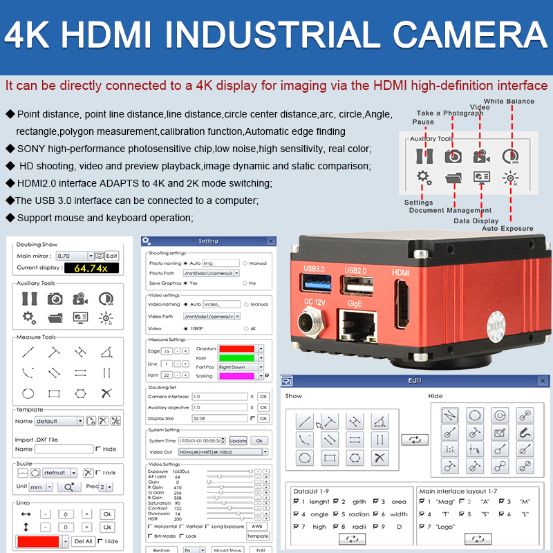 | Note | 1. This product is HDMI/LAN LAN/USB3.0 output, Connect directly to the monitor through an HDMI cable, or connect to a computer through a network cable/USB 3.0 interface for use. 2. This product has two USB ports, one for connecting to a mouse and the other USB 3.0 for connecting to a computer. (You can also set up an interface to connect to a USB drive and an interface to connect to a mouse). 3. Photography,video recording,and measurement can be achieved on both the monitor and computer. 4. This product does not contain a monitor. 5. This Product Does Not Contain Interference Plates;If Necessary,Please Purchase it Separately; |