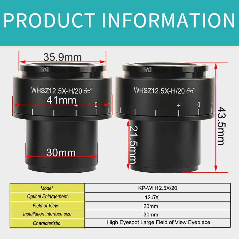 High Eyespot Large Field of View Eyepiece WH12.5X/20mm,Diopter Adjustable