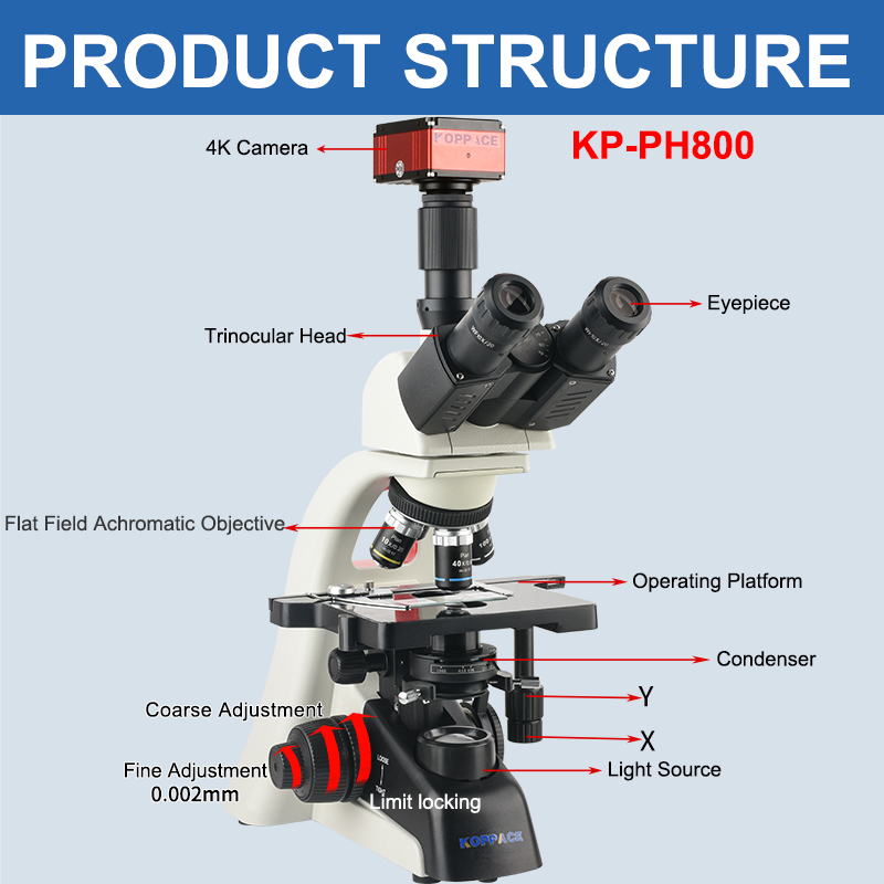| Packing List | 1、Eyepiece WF10X/20mm *2 2、Eyepiece WF16X *2 3、Objective Lens 4X *1 4、Objective Lens 10X *1 5、Objective Lens 40X *1 6、Objective Lens 100X *1 7、Trinocular Microscope Body *1 8、Power Adapter *1 9、5 Pieces Specimen *1 10、Dust Cover *1 11. 4K Camera *1 12. HDMI Line *1 13. Camera Power Supply *1 14. Calibrating Ruler *1 15. USB 3.0 Line *1 |