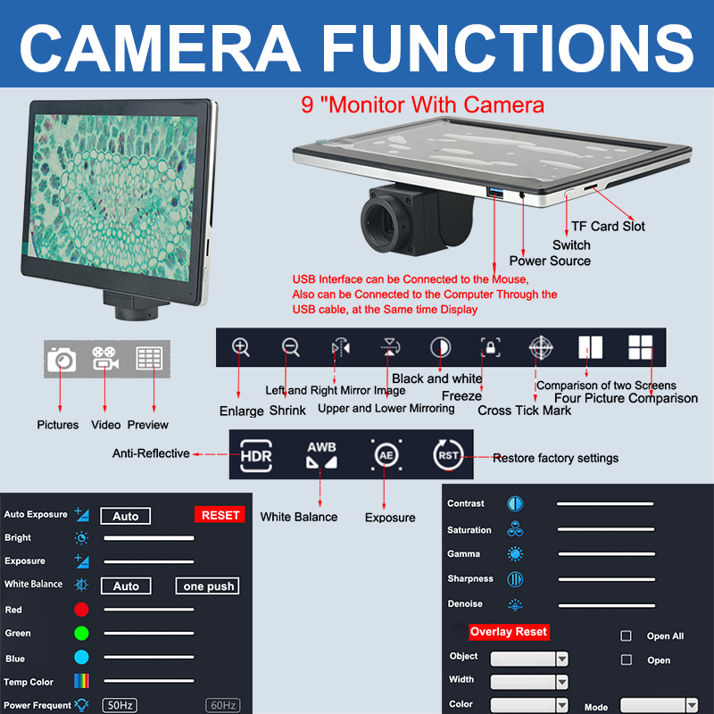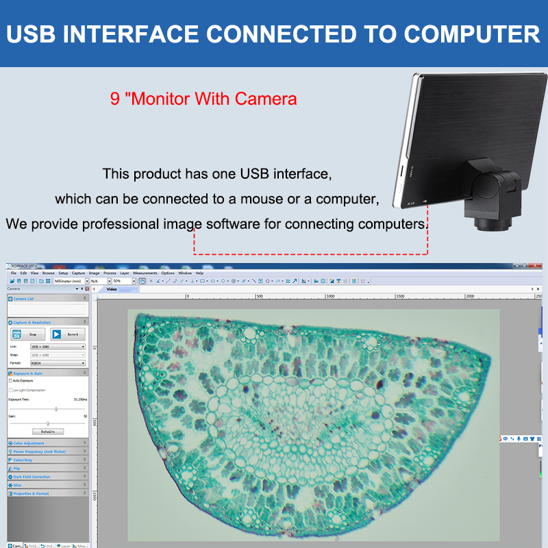 | USB Function | This Product Mainly Through the 9 inch Screen Display, USB Interface Can be Connected to the Mouse,Also can be Connected to the Computer Through the USB Cable,Connected to the Computer we Provide Professional Image Software. |