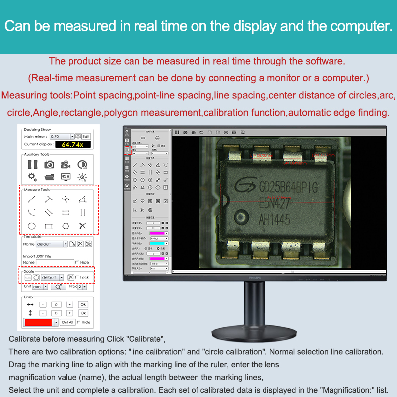 | Measuring Function | Point Spacing,Point Line Spacing,Line Spacing,Center Distance arc,circle, Angle,Rectangle,Polygon Measurement,Calibration Function,Automatic Edge Searching |