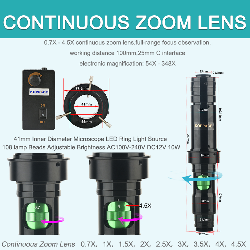 | Objective Lens | 0.7X-4.5X Continuous Amplification |