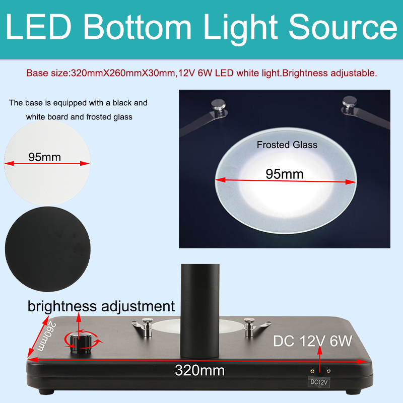 | Bottom light source | 12V 6W LED white light. Brightness adjustable. |