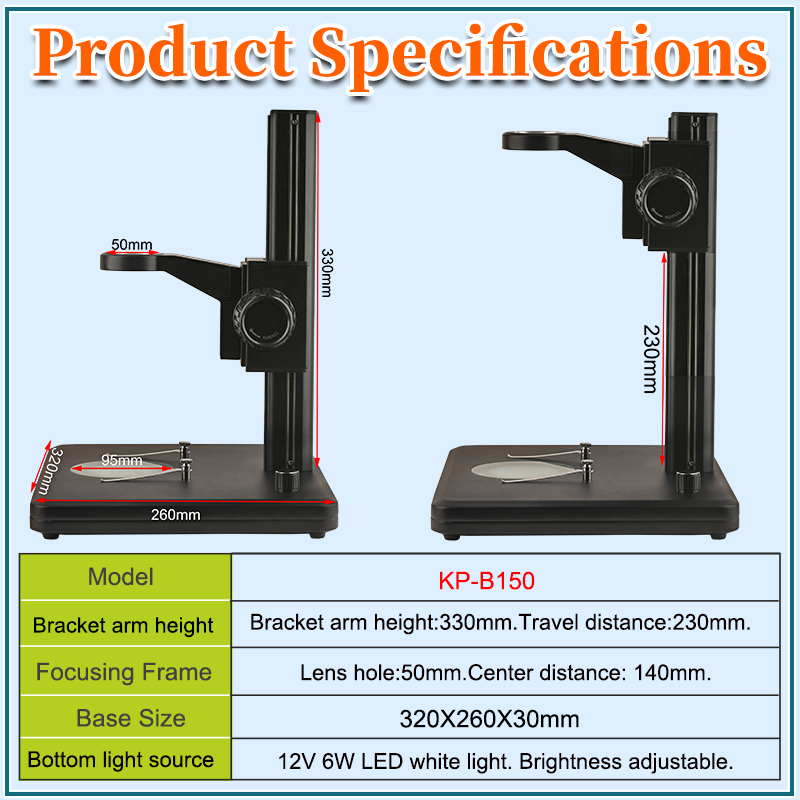 | Bracket arm Height | Bracket arm height:330mm.Travel distance:230mm. |